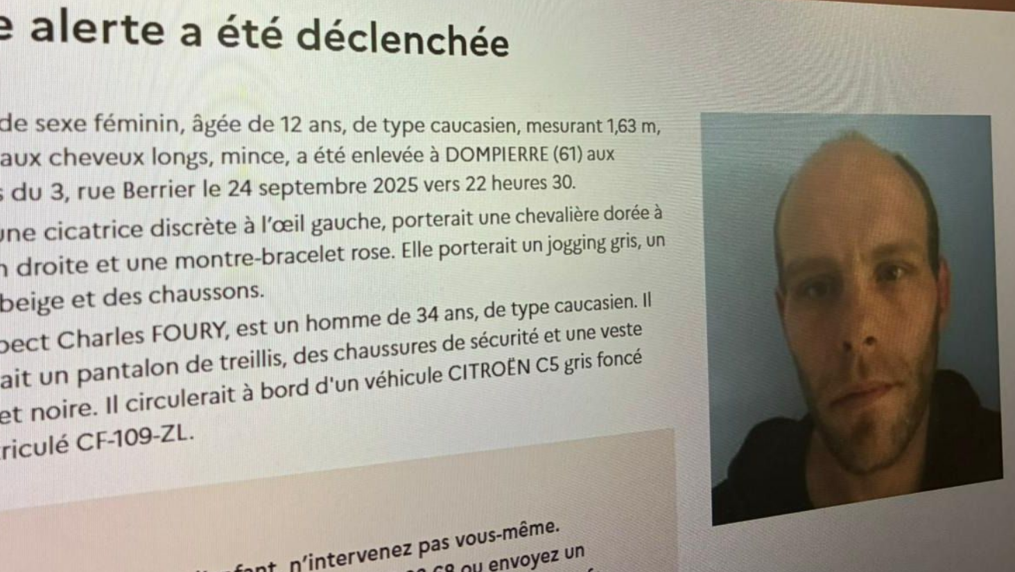 L’alerte enlèvement déclenchée après la disparition d’une jeune fille de 12 ans dans l’Orne