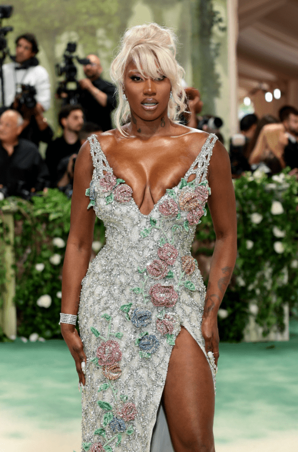 Lors du Met Gala au Metropolitan Museum of Art de New York, dans la nuit du 6 au 7 mai 2024, Aya Nakamura a fait une entrée très remarquée. La chanteuse s’est présentée dans une somptueuse robe Balmain, inspirée par le thème de la soirée, « The Garden of Time » (Le jardin du temps).