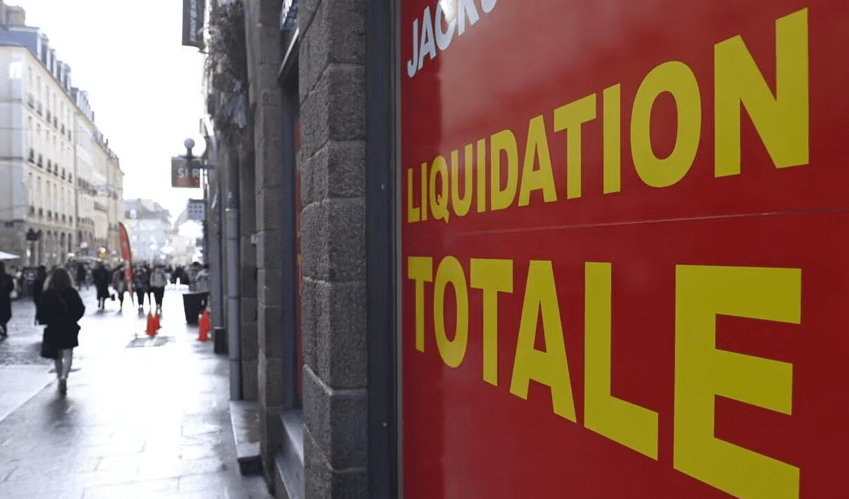 Des affiches fluo annoncent une “liquidation totale”, les remises s’affichent en grand et les clients affluent.