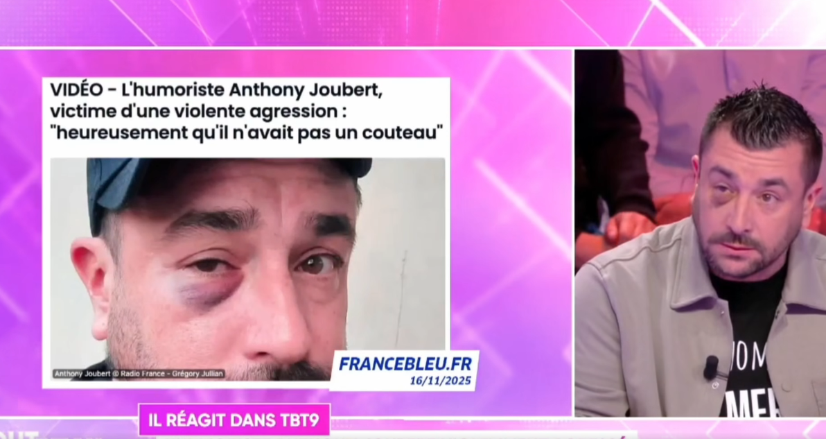 Invité trois jours plus tard dans Tout Beau, tout neuf, Anthony Joubert est revenu en détail sur ce moment d’horreur. Avec son humour caractéristique, il décrit l’arrivée de son agresseur, un “colosse” persuadé qu’il voulait lui aspirer l’âme, avant de lui asséner une pluie de coups. L’humoriste tente de bloquer une première droite, mais se retrouve ensuite submergé par la violence de cet homme « plus large que Hulk ». Heureusement, le train atteignait sa gare d’arrivée, ce qui a mis fin à l’agression. Le contraste entre la gravité des faits et le ton léger qu’il adopte donne à la scène une dimension presque irréelle.